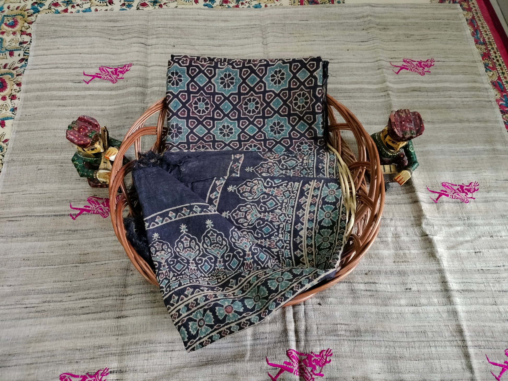 Pure tussar Ajarak hand block print Kurta and Dupatta 2.5 mt (each)