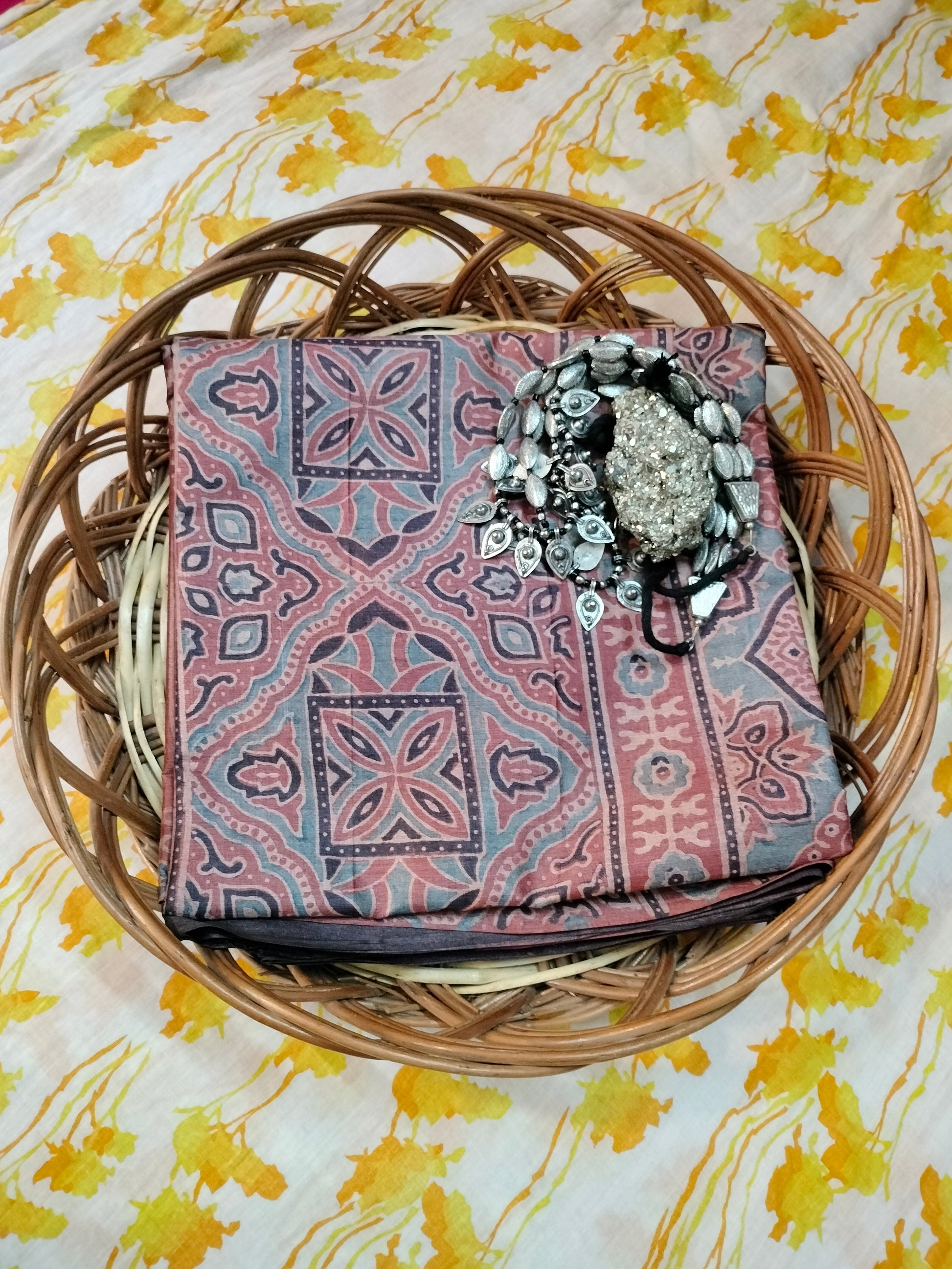 Pure tussar ajarak hand block print saree with silk mark